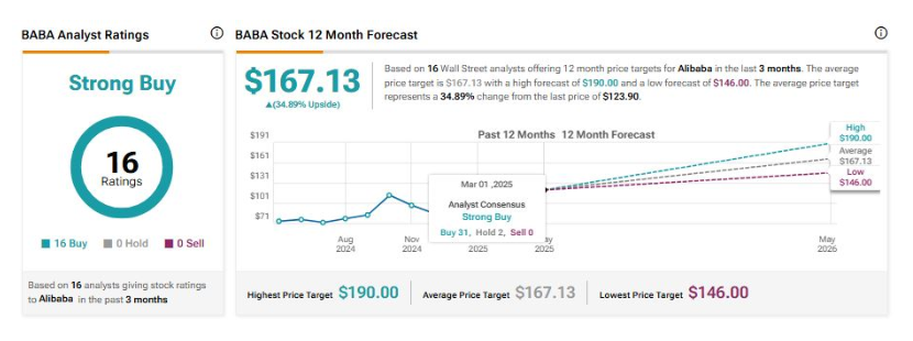 UBS analyst Kenneth Fong maintained a Buy rating with a $180 price target. He pointed to steady trends in Alibaba’s core commerce business and narrowing losses in non-core areas.