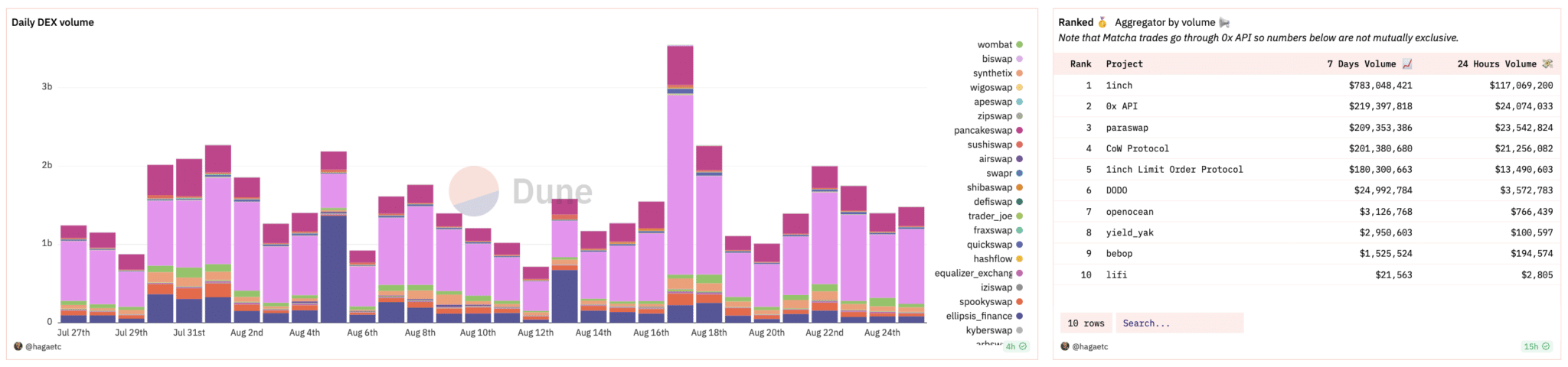 Popular DeFi aggregators 1inch, 0x, and Paraswap facilitate about $1.2 billion of volume weekly.