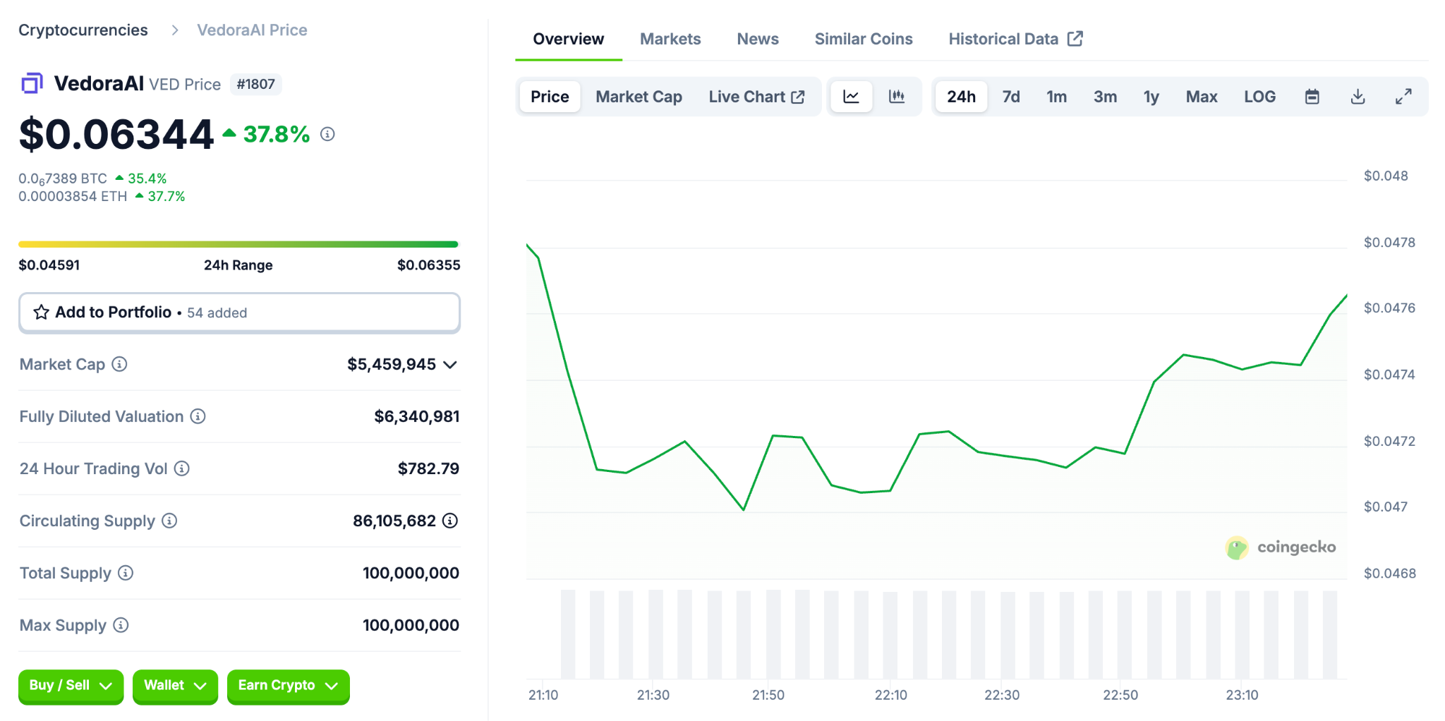 - No overhead resistance: As a newer token, Vedora has little chart resistance to cap its rise, meaning momentum traders may push it even higher.