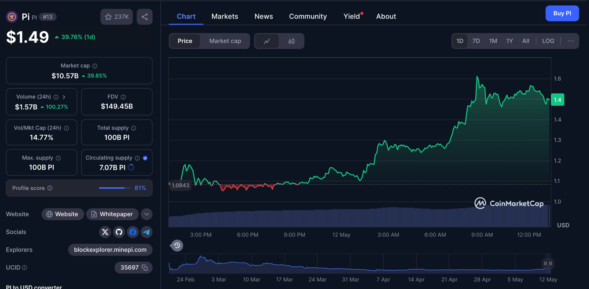 The PI Core Team is expected to make an interesting announcement on May 14, 2025. If this release contains news about fresh partnerships, tokenomics revisions or an exchange listing, it might cause the price to rise even more.