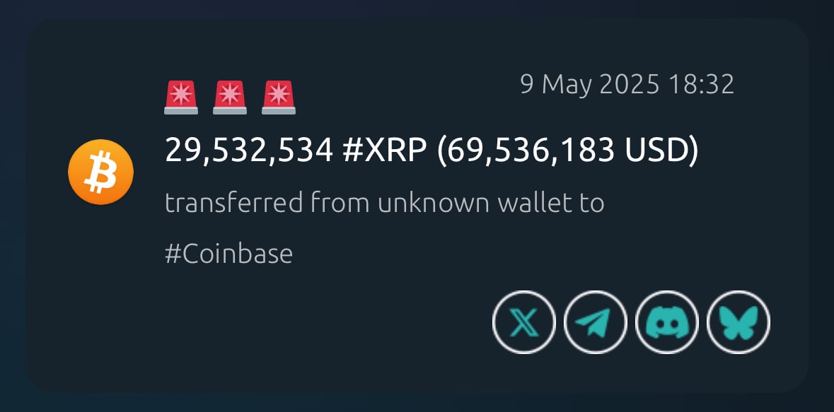 However, recent whale activity has raised questions about analysts’ XRP price prediction of $5. Blockchain tracker Whale Alert indicated two massive transactions, involving 29.53 million XRP each, moved to the centralized exchange Coinbase within six days. Valued at nearly $134 million, crypto pundits interpret these transfers as potential sell-offs.