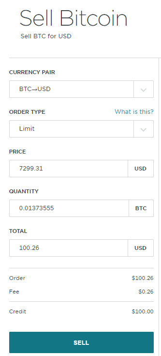 Head over to the Sell section of Gemini to choose how you want to sell your Bitcoin and the price you are willing to sell your Bitcoin in fiat for. Unlike Coinbase, you first need to trade your Bitcoin for fiat currency, before being able to withdraw it to your bank account.