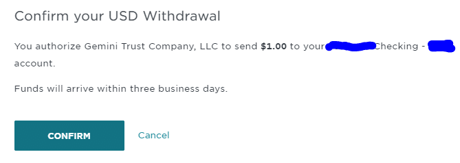 Like Coinbase, it will take Gemini a few business days to send you the funds.
